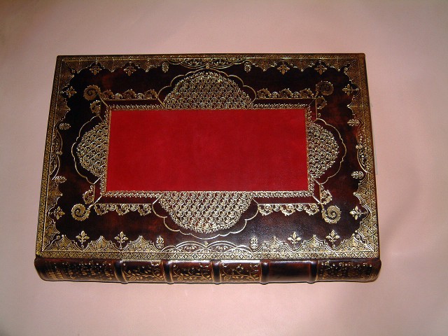 Don’t forget that a book has two sides therefore the tooling is repeated to the verso cover exactly to match the former.
