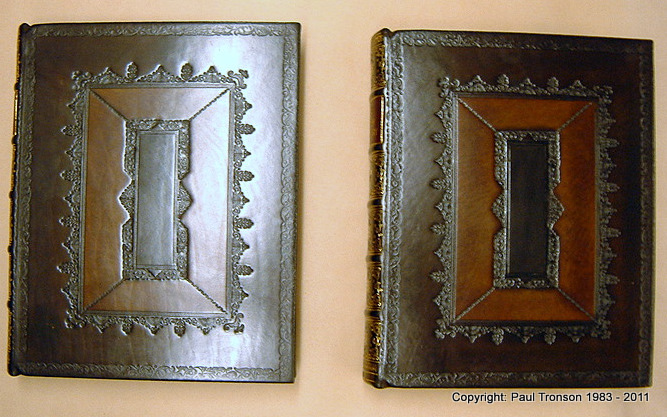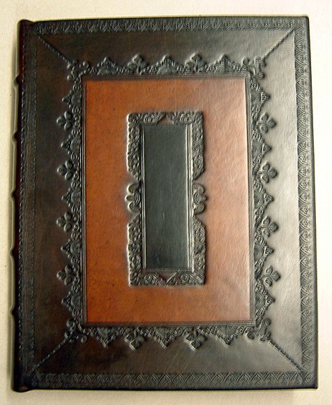 Supposedly started in Cambridge University in the early 17th Century it soon became their trademark style with simple line tooling around a middle and darkened centre panel and a lightly speckled middle panel this style is timeless if executed in the proper manner.