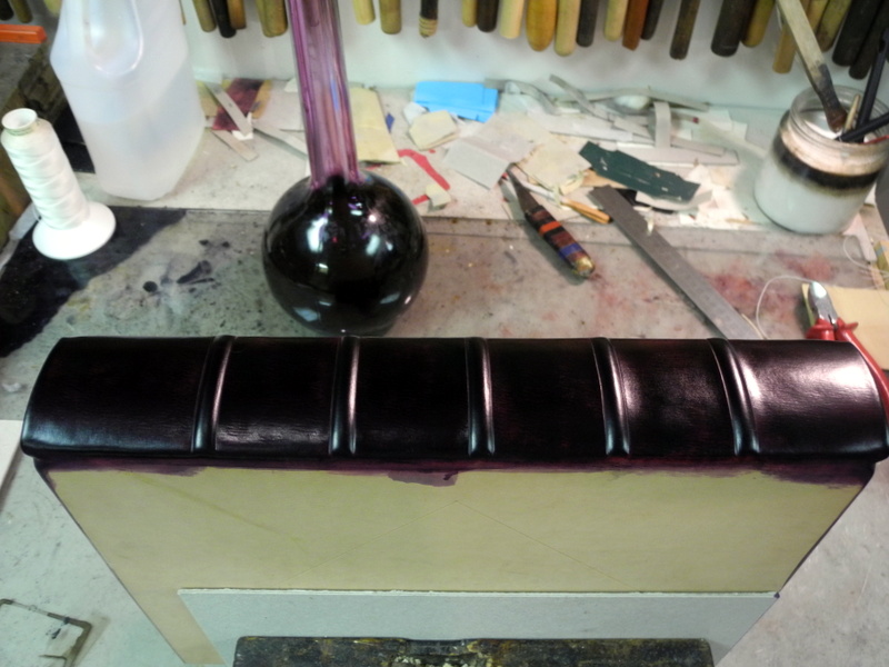 First the colour is applied to the spine and is layered to the required depth and then the covers treated the same .