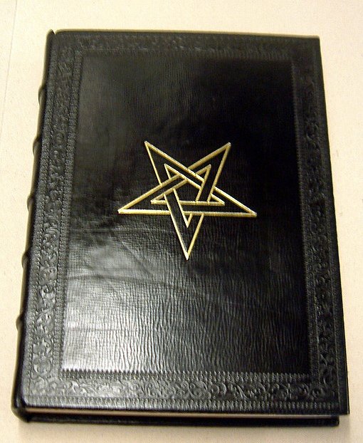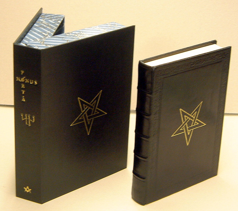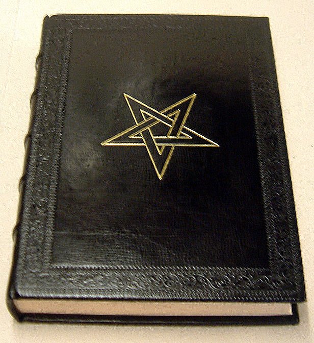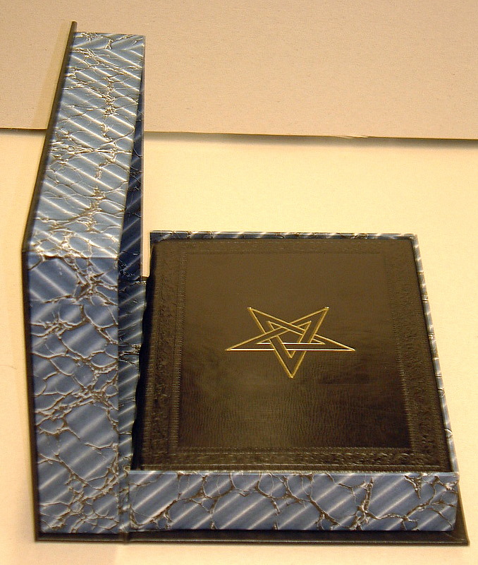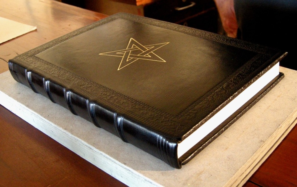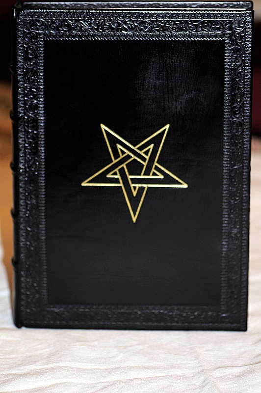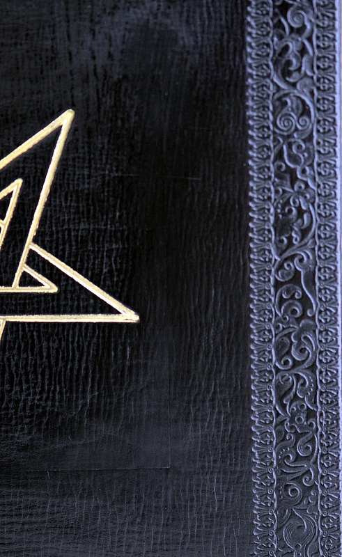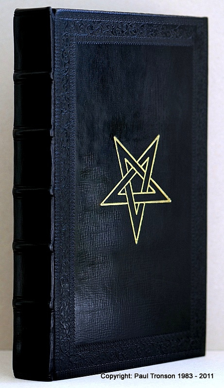 The pentagram is mapped out and tooled in 24 carat gold leaf, the spine is rolled off in blind over the raised bands just like the film prop…..The client did have the option of having seals and sigils gilt within the compartments with a title……. but opted to go “au naturelle” just like the film prop, to retain an air of mystery.