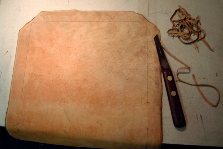 The leather is consecrated virgin calf, vegetable tanned and cured by hand, then paste washed. The colour is a carefully blended 17thC formula, and the binding is exactly to the mid 17th century.