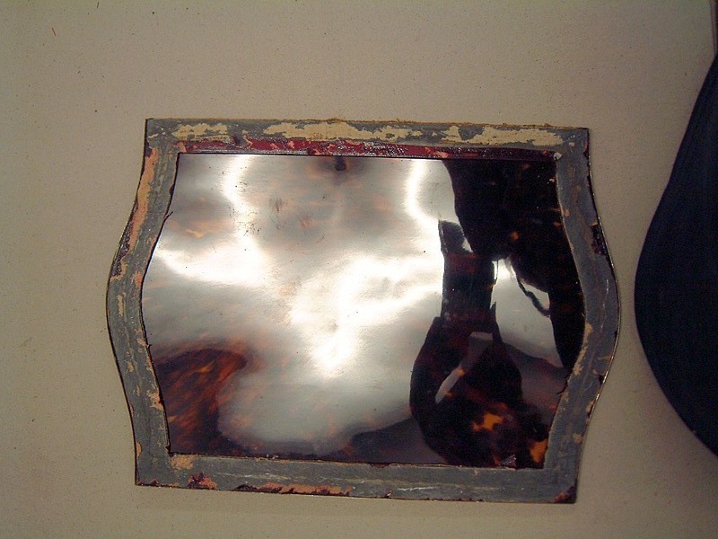 The tortoiseshell has a zinc support frame with a mounted hallmarked silver frame over it held together with tiny silver nails.