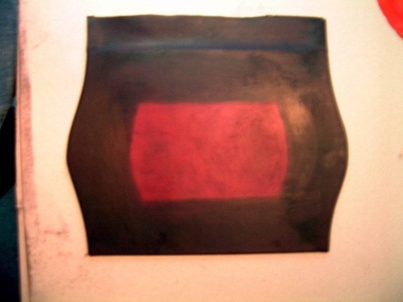 The turn-ins are then coloured as is the front and back, leaving a space for the second colour.