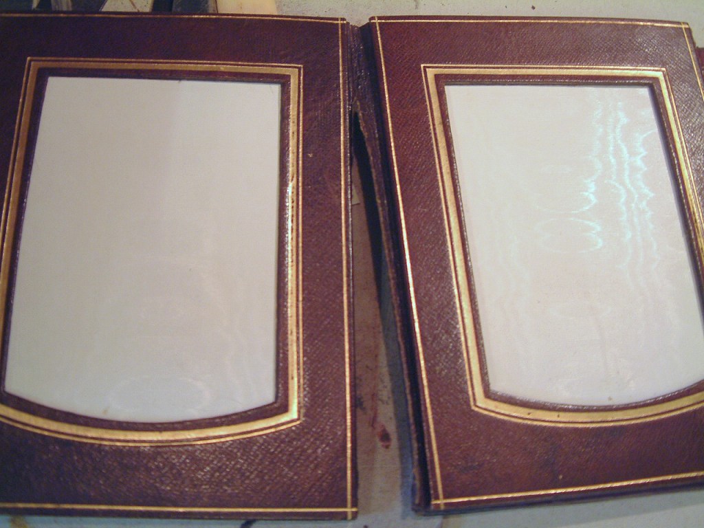 It is even stamped “Tiffany & Co London 1840” All of the frames need to be removed and re-jointed with matching leather, pared as thin as possible.
