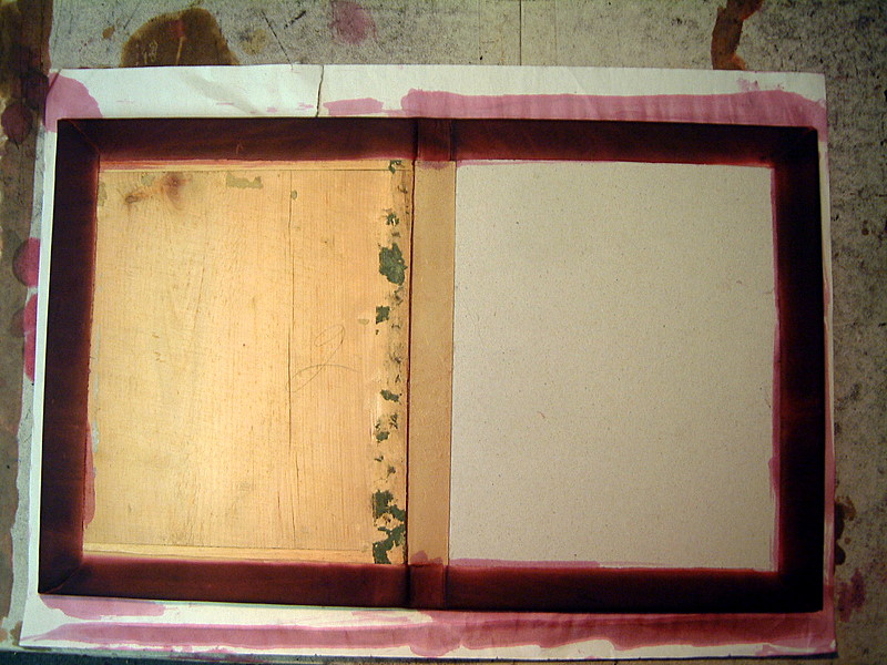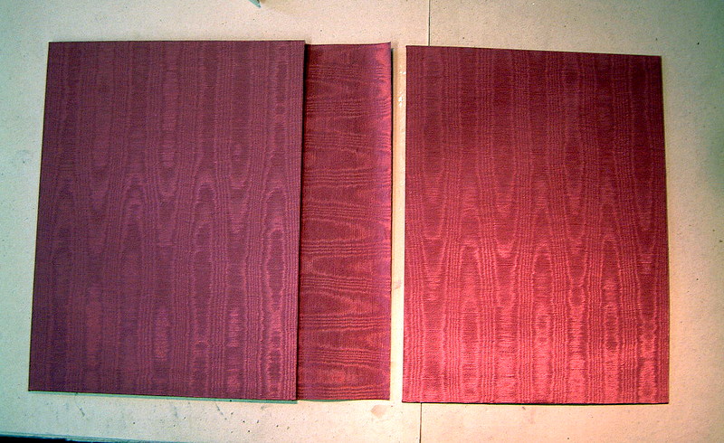 The silk is cut for the back liner and a wallet is formed also. The silver plate is polished and attached to the wooden board…..Job done!…And now we have two valuable Tiffany blotters saved from extinction.