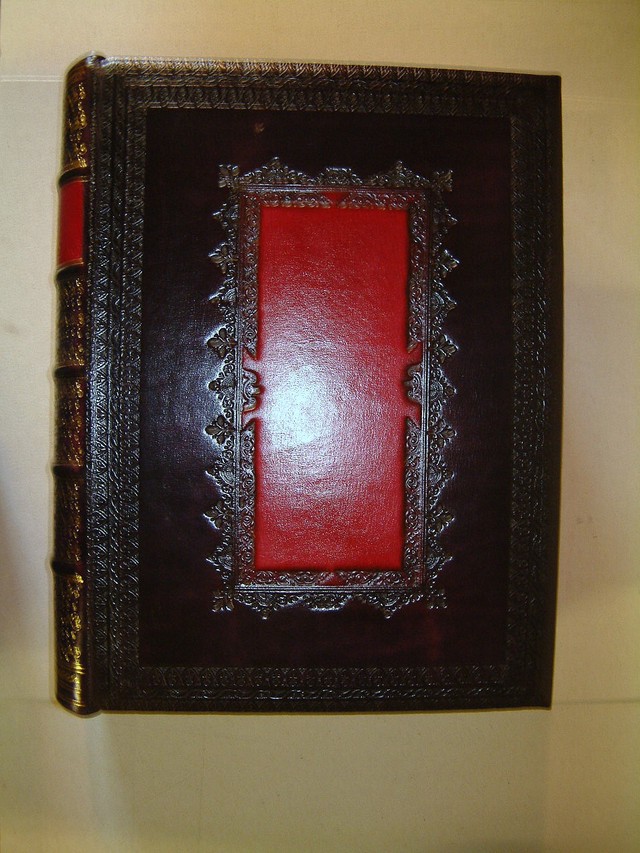 It’s been a busy month with books coming in and out, the piles get higher and the waiting list longer. Some very nice books though, these 3 are for a customer who has a very fine library and is very particular about having his books uniformly bound to match each other. I suppose you could call it his ‘Signature’ as were the 17th and 18th century elaborate “Armorial Bindings”, where a man’s wealth and stature was often measured by his library.