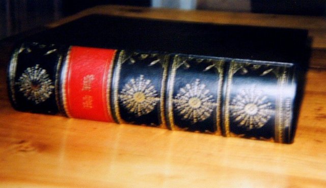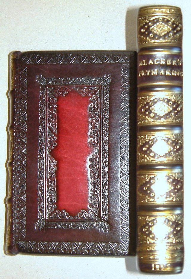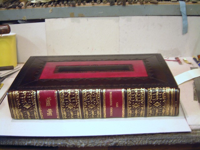 I don’t know how the Old Boy coped with the heat from tooling in those days, the 2 colour bible pictured above,took over 800 impressions of tools on the spine alone.