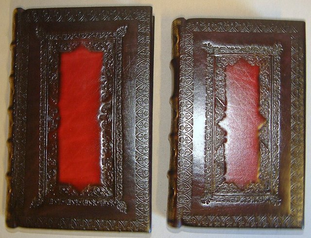 The style is the same, even the spines are tooled to match, but I have used different tools for the inner borders.