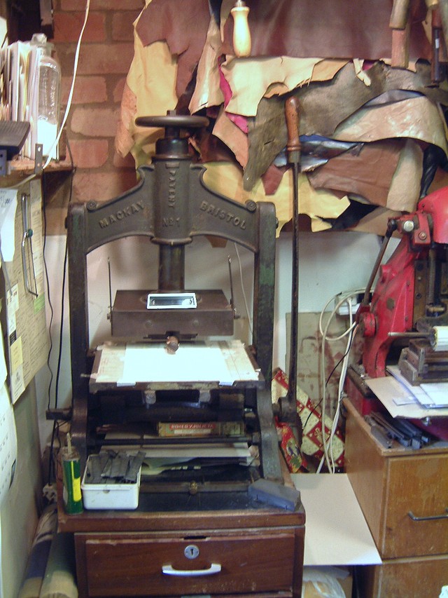 Although the workshop is “compact and bijou” (can you see the HP sauce bottle under the nipping press in the second picture……..it is a vital ingredient to a secret formula…… so is the salad cream), you wouldn’t think it if you saw the size of the books I have in for restoration, I have just been sent a commission of 2 large 4to volumes from the USA and they are nothing in size compared to some of these which are in for restoration.