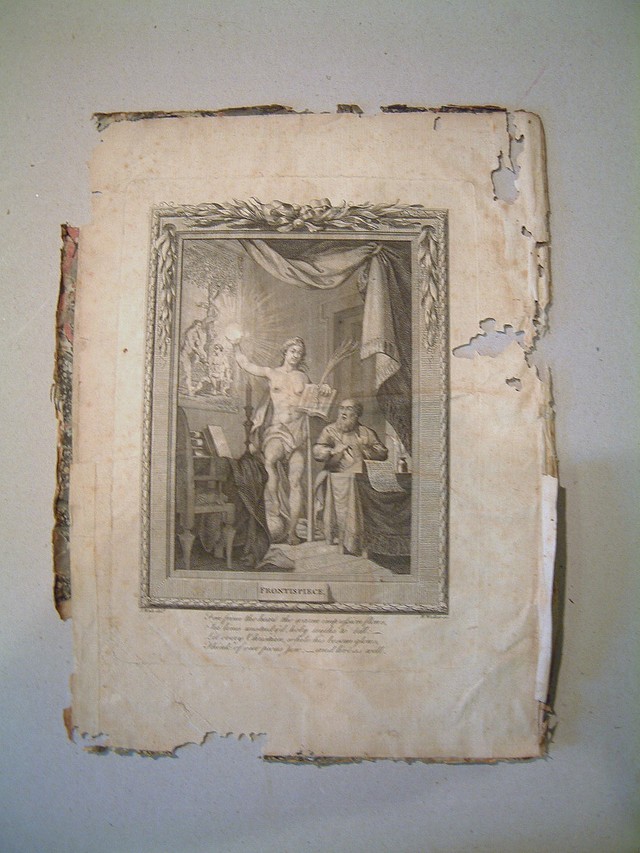Interestingly the plates facing the title page on both books had been very crudely pasted down to the boards but not as an endpaper. My experience tells me this usually means concealment, something hidden. Many years ago I restored a rareJames I “SHE” Bible which was an armorial binding on wooden boards, when I carefully lifted the endpapers I found a vellum parchment hand written in Greek, in black and red ink under each one, I then removed the original leather from the boards and found two more!!