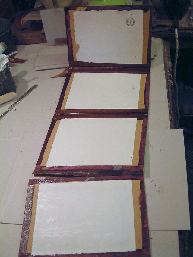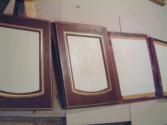 I also had a rather nice leather Victorian concertina photo album to restore. This one was a very rare early Tiffany’s 8 section piece that had to be completely stripped and the joints re-made, not an easy task as you can see.