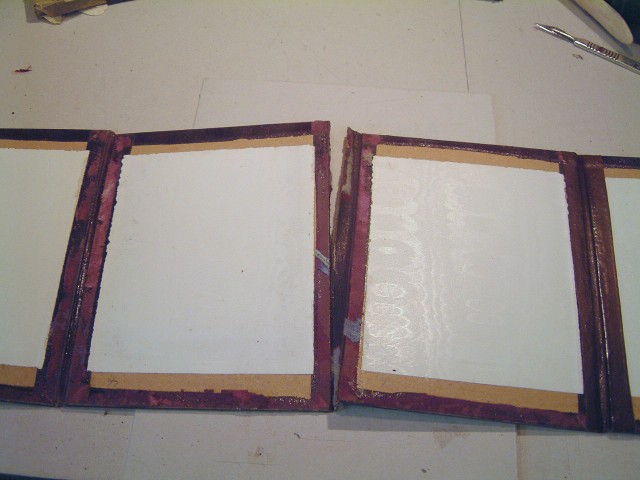 First the mounts had to be removed and the turn-ins released, the bases restored from both sides with leather dyed to match, pared wafer thin and even. Then the frames were restored and re-mounted.
