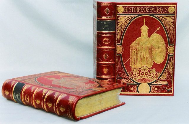 The Customer wanted a leather binding for his “Histoire du Grec” so I matched the colour of the cloth and inlayed the original cloth covers back and front and tooled a gold border around them.