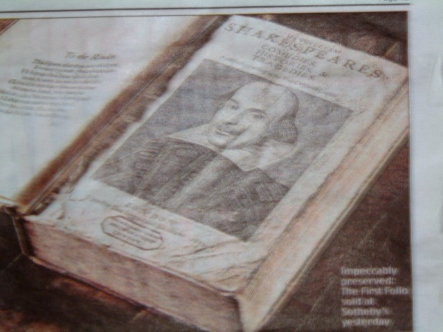 After all the excitement, the Shakespeare First folio was sold for the highest price ever seen for a printed book at Sotheby’s London.The hammer price was £2.5 million plus the buyer’s premium making a total of £2.8million… However; the word around the auction room was that considering the condition and provenance of this folio, from Dr Williams’ Library, the buyer obtained a very good deal.